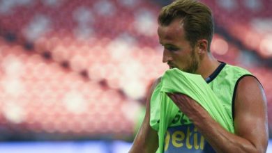 Harry Kane takes part in a training session in pre-season. If Spurs striker Harry Kane starts the first match of…